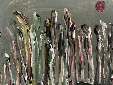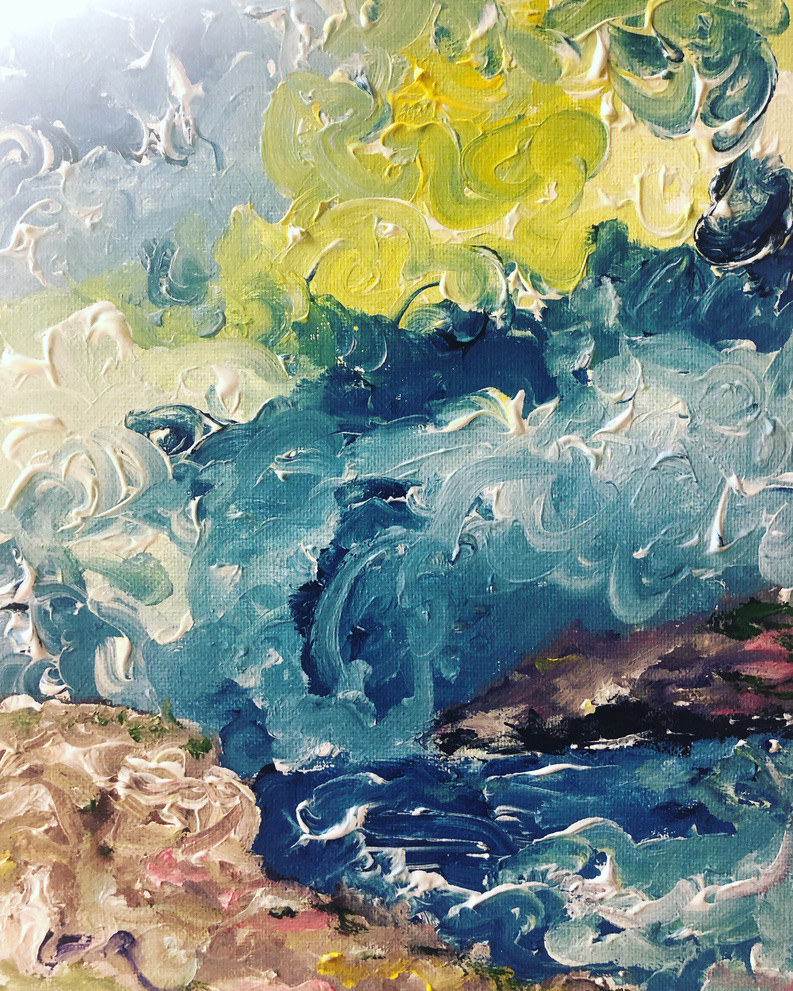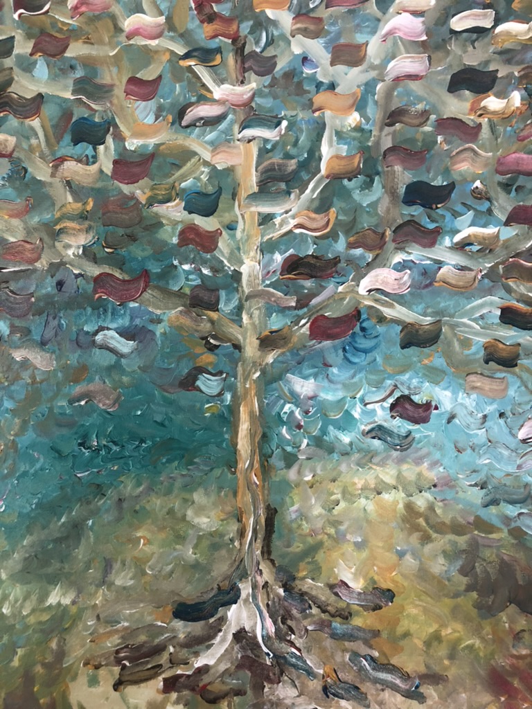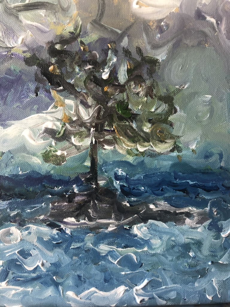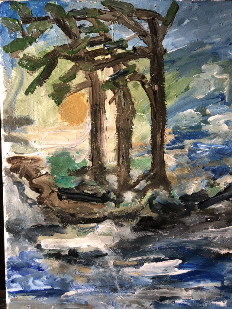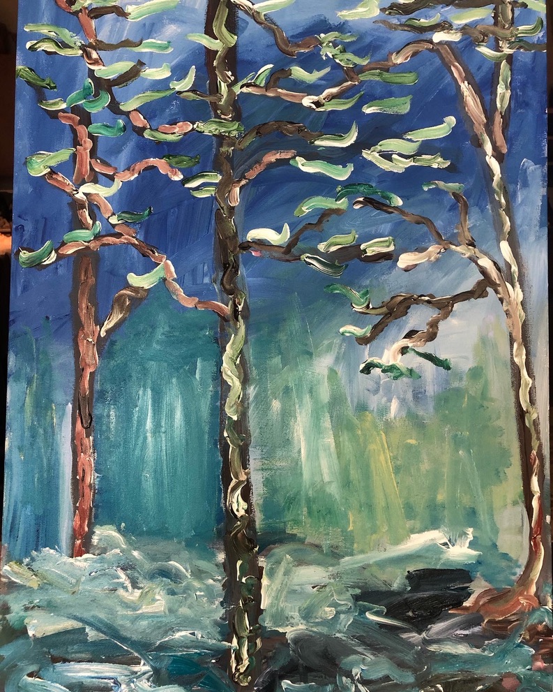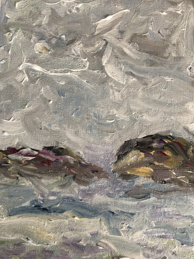 I painted for a brief spell in college. In March 2022, I awoke one morning and knew it was time to paint again. The painting was different in this new time. It was as though a new part of me had blown open, and that it was filled with color and light and shadows of my beloved northwoods of Ontario. From that first burst–in which I painted more than 100 paintings in month–I have continued to explore connection with alterity as it guides me, dares me, invites me, and teaches me about beauty, nature, perception, and creative imagination.